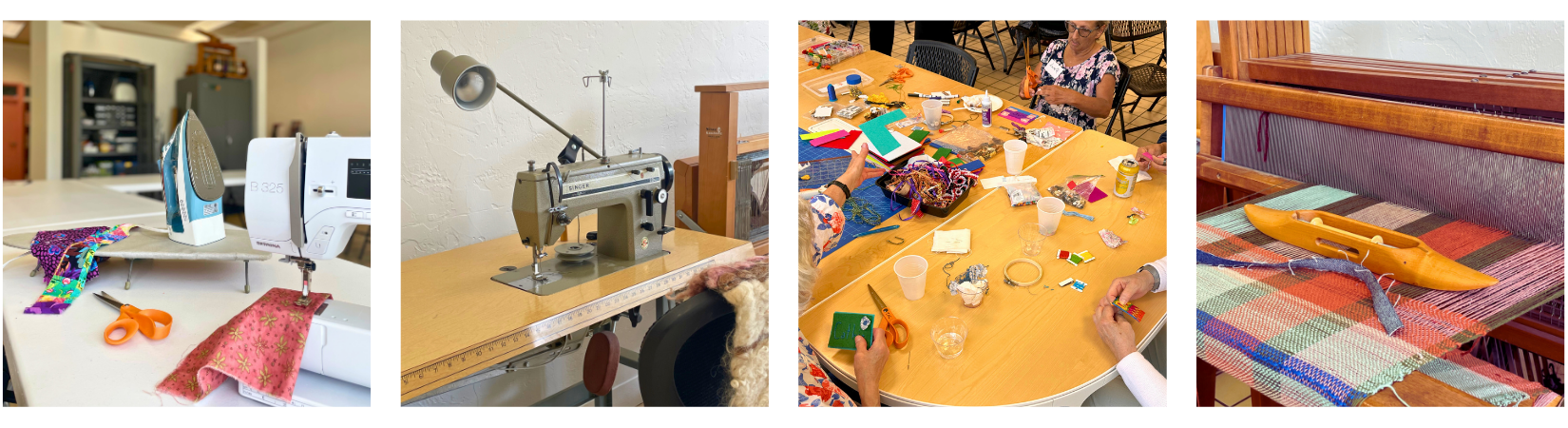 Open Studio is a space for members to work in community during designated studio hours with access to a variety of tools and equipment including weaving looms, sewing machines, smaller tools, large table space and more.